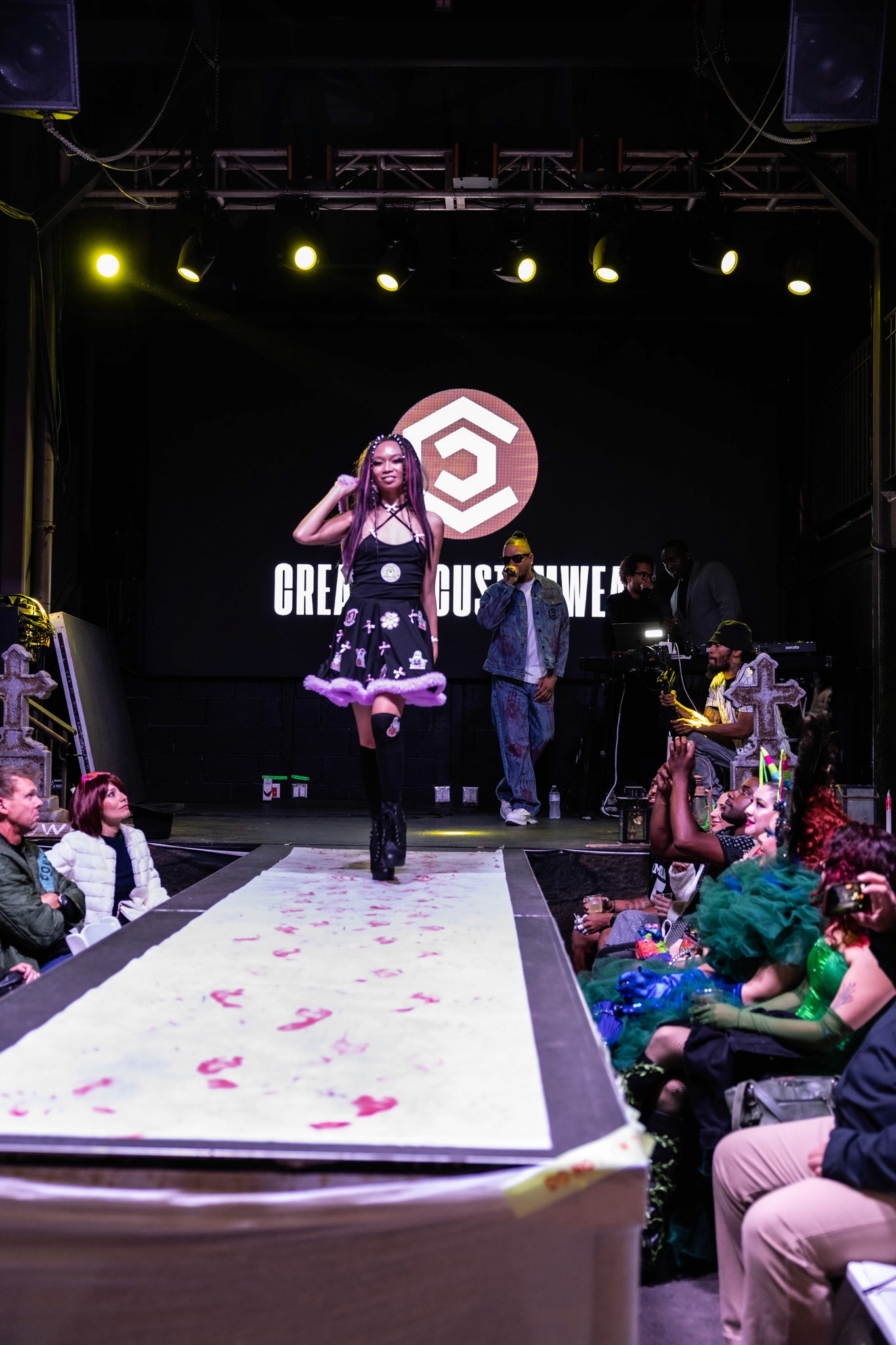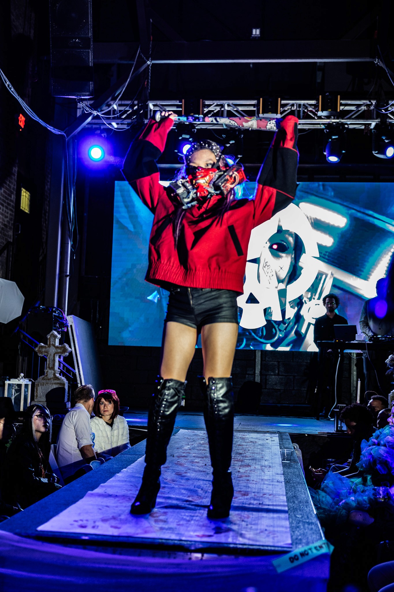 Art collective LuxeartAgency gathered local austin artists and fashion designers to create looks for their Halloween themed fashion show, Moda Magic. With over 25 models and 10 designers, this show became a huge hit for selling artwork and fashion. In this show I walked for 3 designers, DEFi streetwear, Creative Customwear with special halloween customized looks, and a designer collaboration between Picklefig's cyberpunk masks and Bad Environment's outfits.
